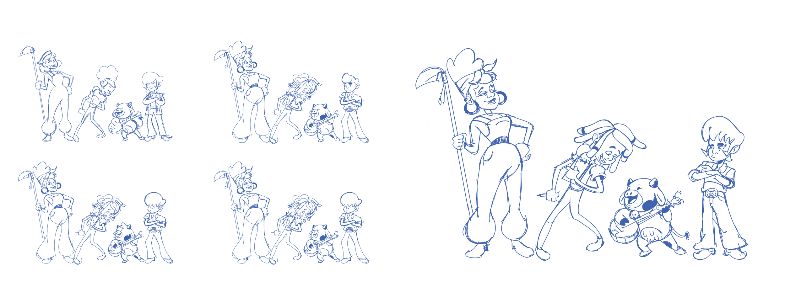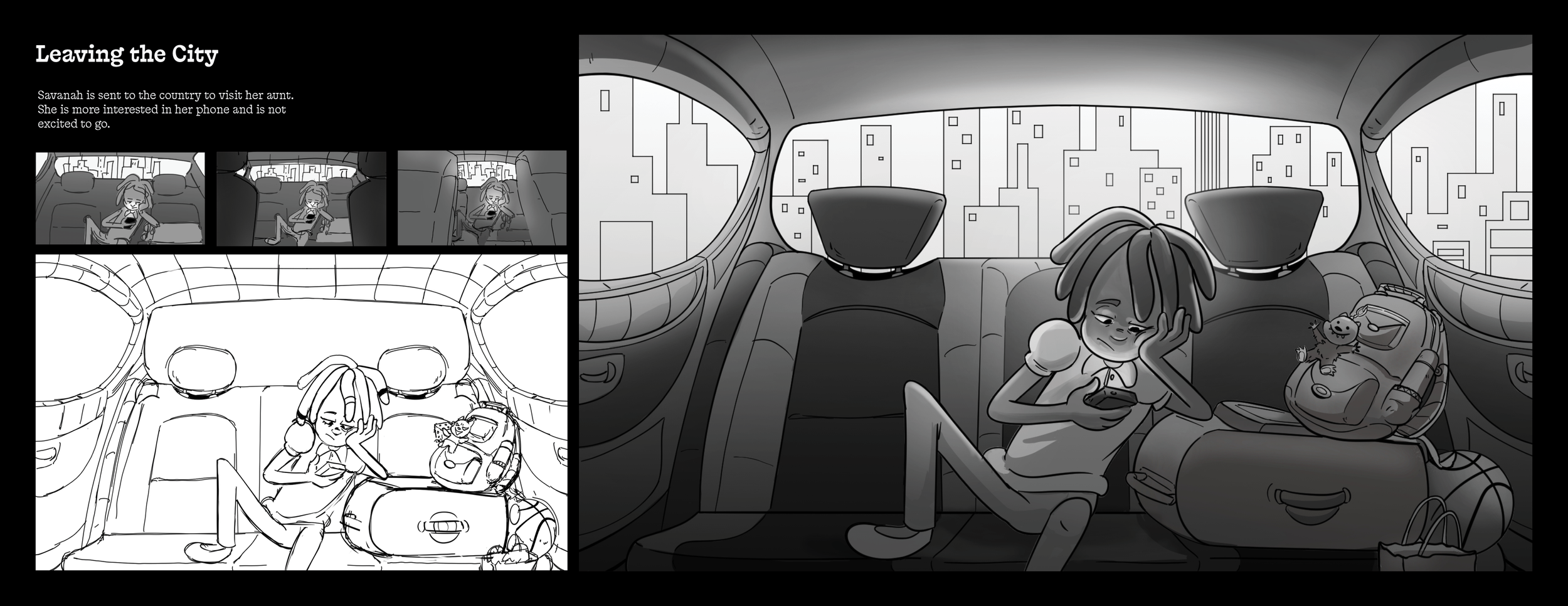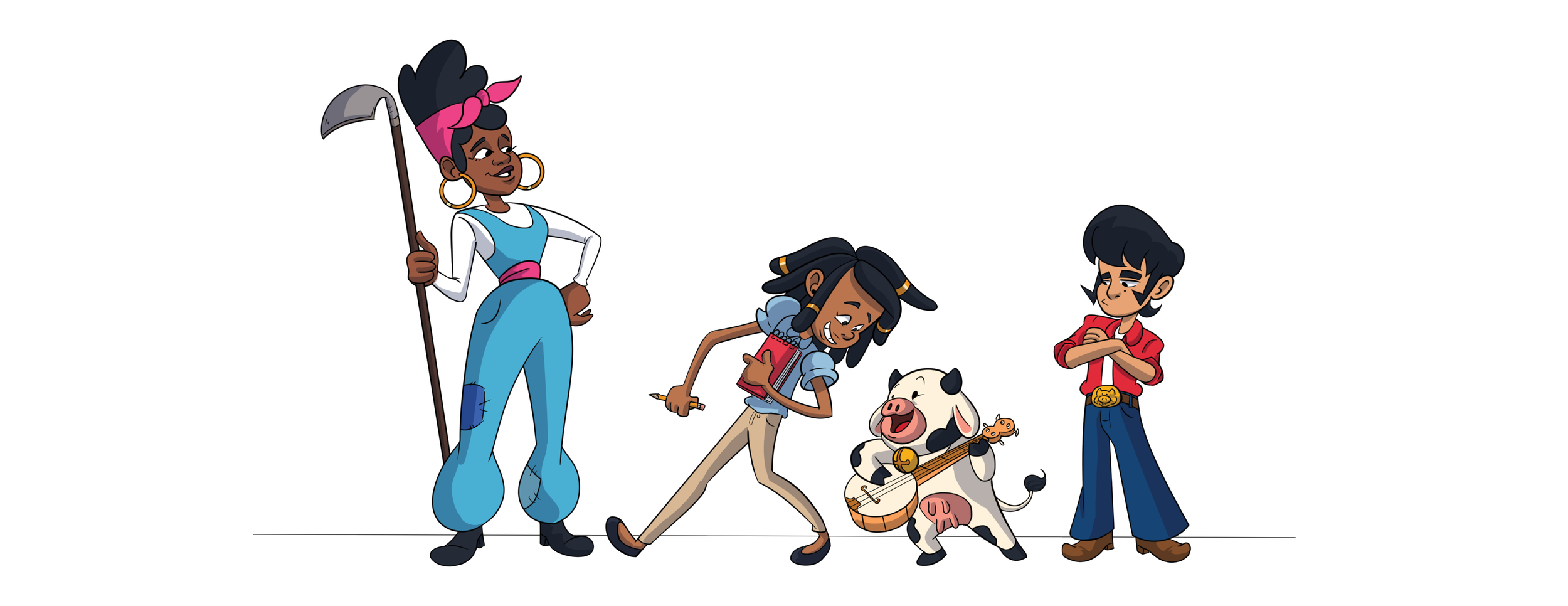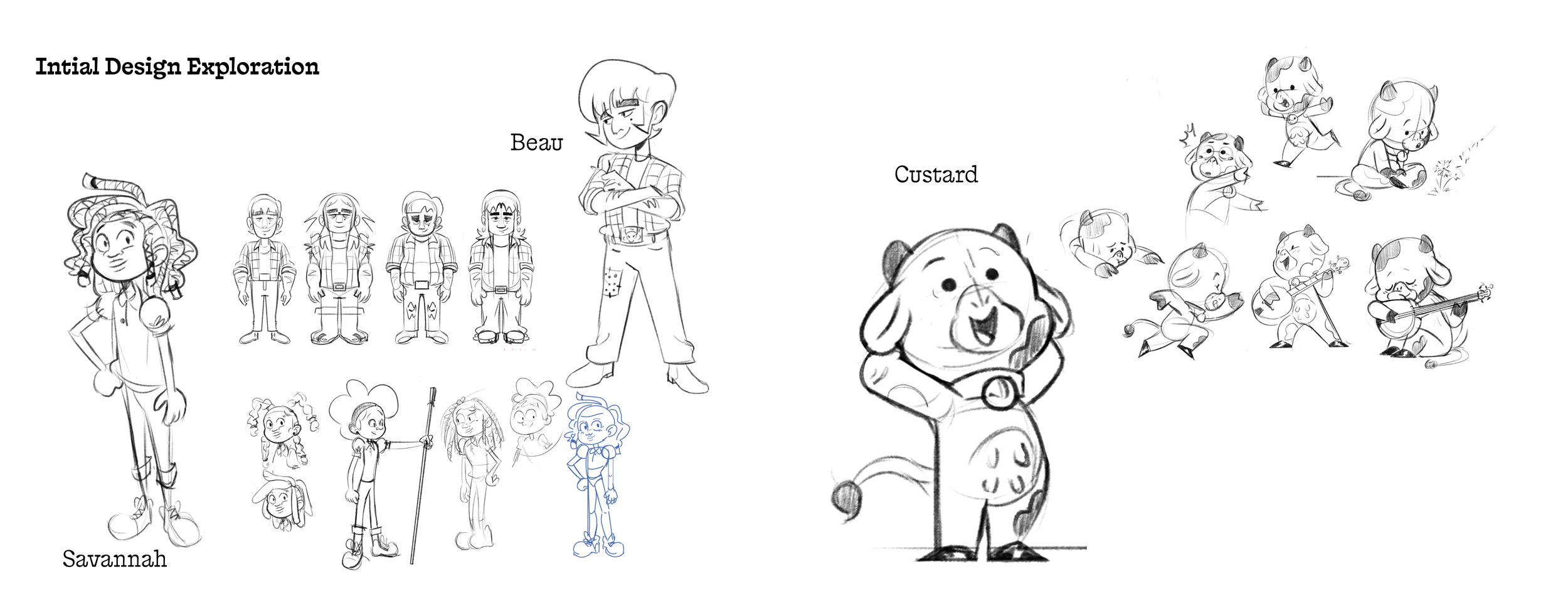 A TV show Concept. Savannah's Wild Summer follows the offbeat adventures of 13 year-old Savannah, city girl who is reluctantly sent to a small rural town to spends the summer on her quirky, Aunt Jane, farm. There she meets her new best friends Beau and Custard the Cow. Together they go on daily adventures as she navigates the simplicity of a rural county town. I explored this story drawing key scenes and character designs.